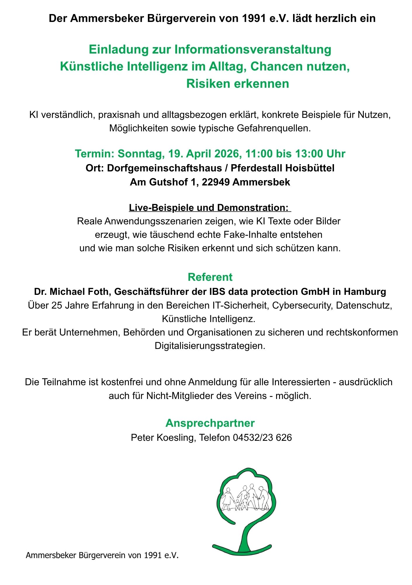 Save the date! Vortrag zum Thema Künstliche Intelligenz am 19.04.2026